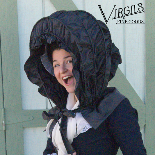 Hats, bonnets, and other millinery items can be found here for 18th, 19th and 20th centuries. We offer a selection of "blanks" (untrimmed) and trimmed millinery to best suit your needs. Don't see exactly what you want? Visit our Custom Commissions tab for availability for custom orders.