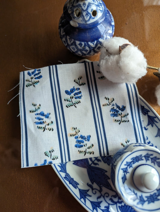Cait's Flowers in Blue, ca1770-1780, Linen/Cotton Print
