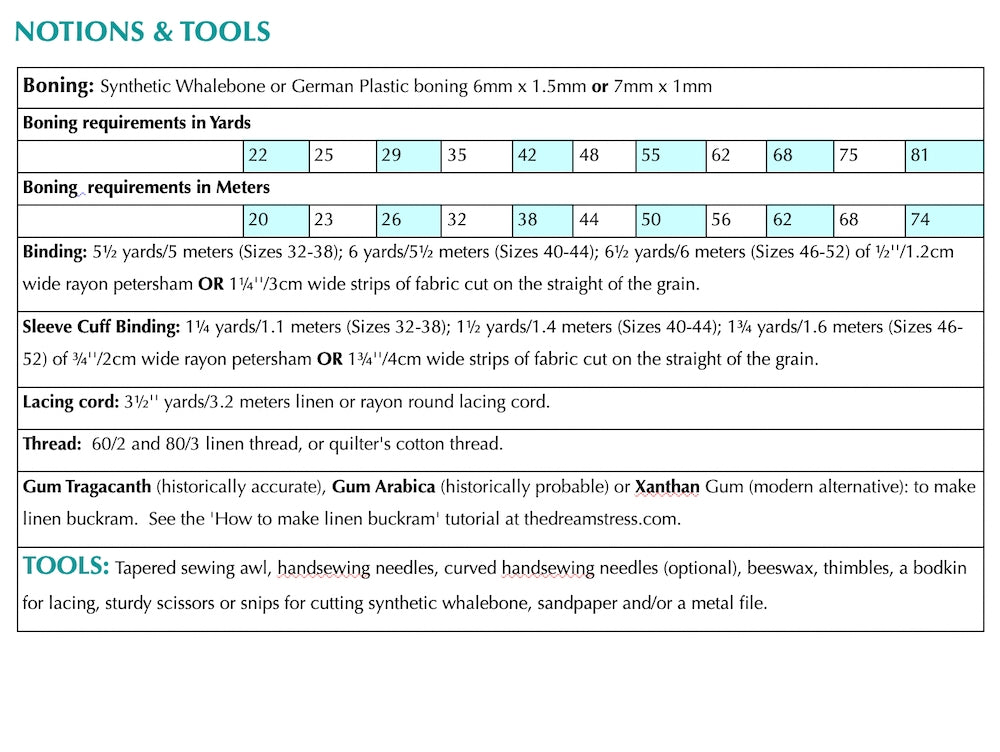 This pattern is recommended for sewists with previous staymaking experience who are confident fitting and adjusting boned garments.
